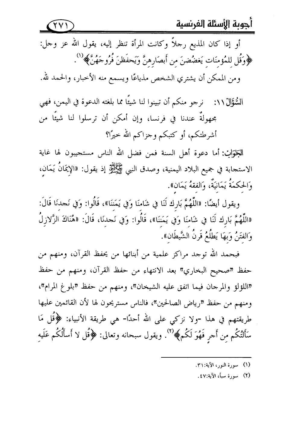 السؤال219: نرجو منكم أن تبينوا لنا شيئًا مما بلغته الدعوة في اليمن، فهي مجهولة عندنا في فرنسا، وإن أمكن أن ترسلوا لنا شيئًا من أشرطتكم، أو كتبكم وجزاكم الله خيرًا؟