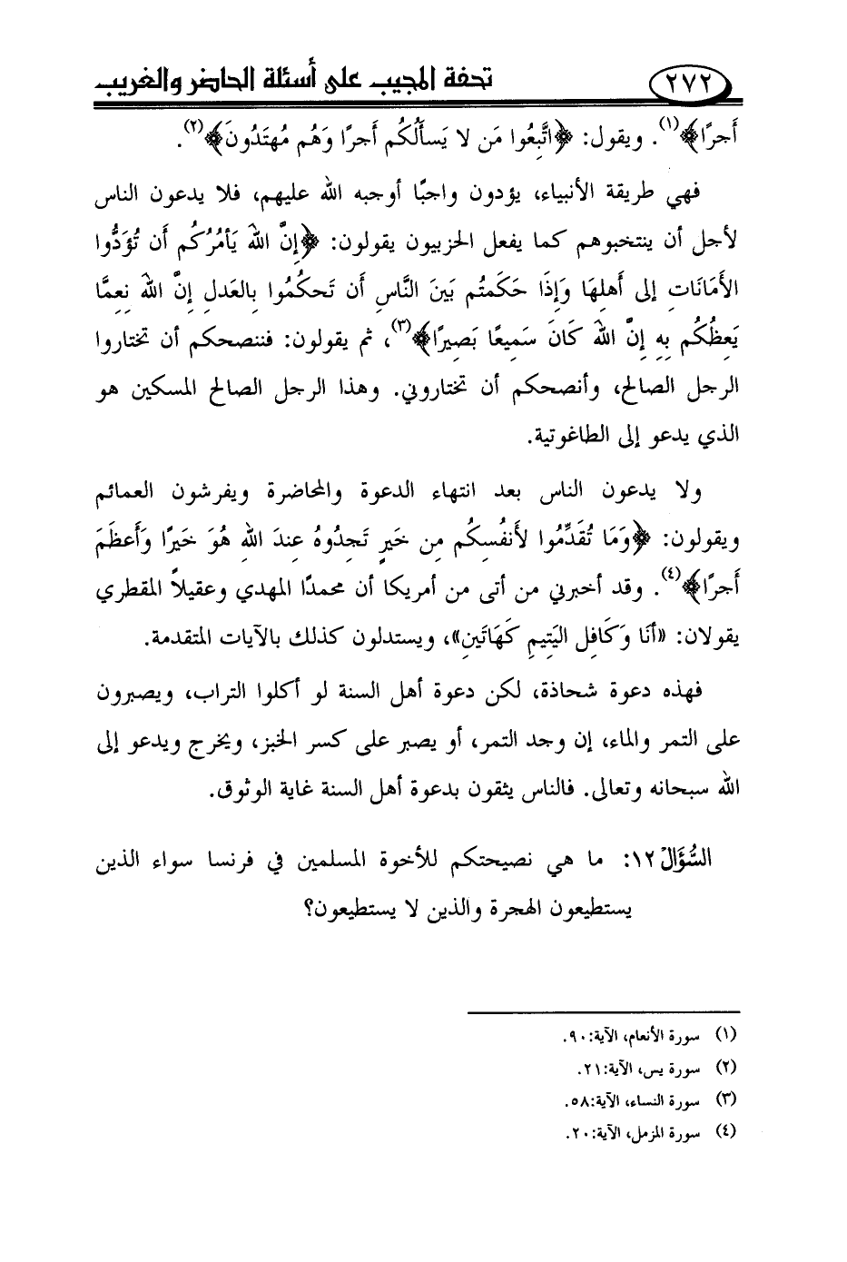 السؤال220: ما هي نصيحتكم للأخوة المسلمين في فرنسا سواء الذين يستطيعون الهجرة والذين لا يستطيعون؟