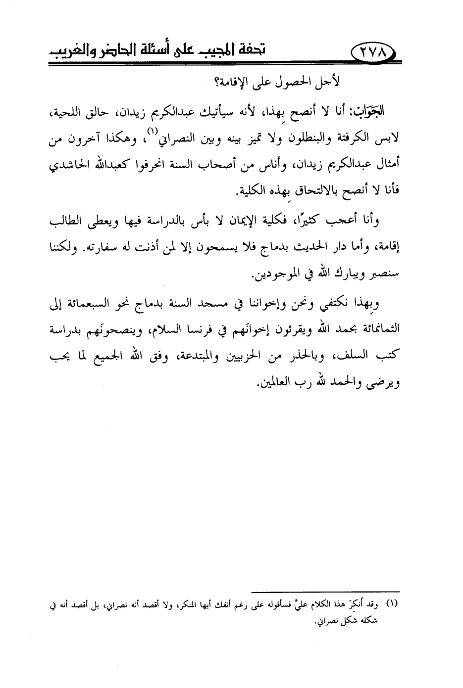 وبهذا نكتفي ونحن وإخواننا في مسجد السنة بدماج نحو السبعمائة إلى الثمانمائة بحمد الله ويقرئون إخوانهم في فرنسا السلام، وينصحونهم بدراسة كتب السلف، وبالحذر من الحزبيين والمبتدعة، وفق الله الجميع لما يحب ويرضى والحمد لله رب العالمين.