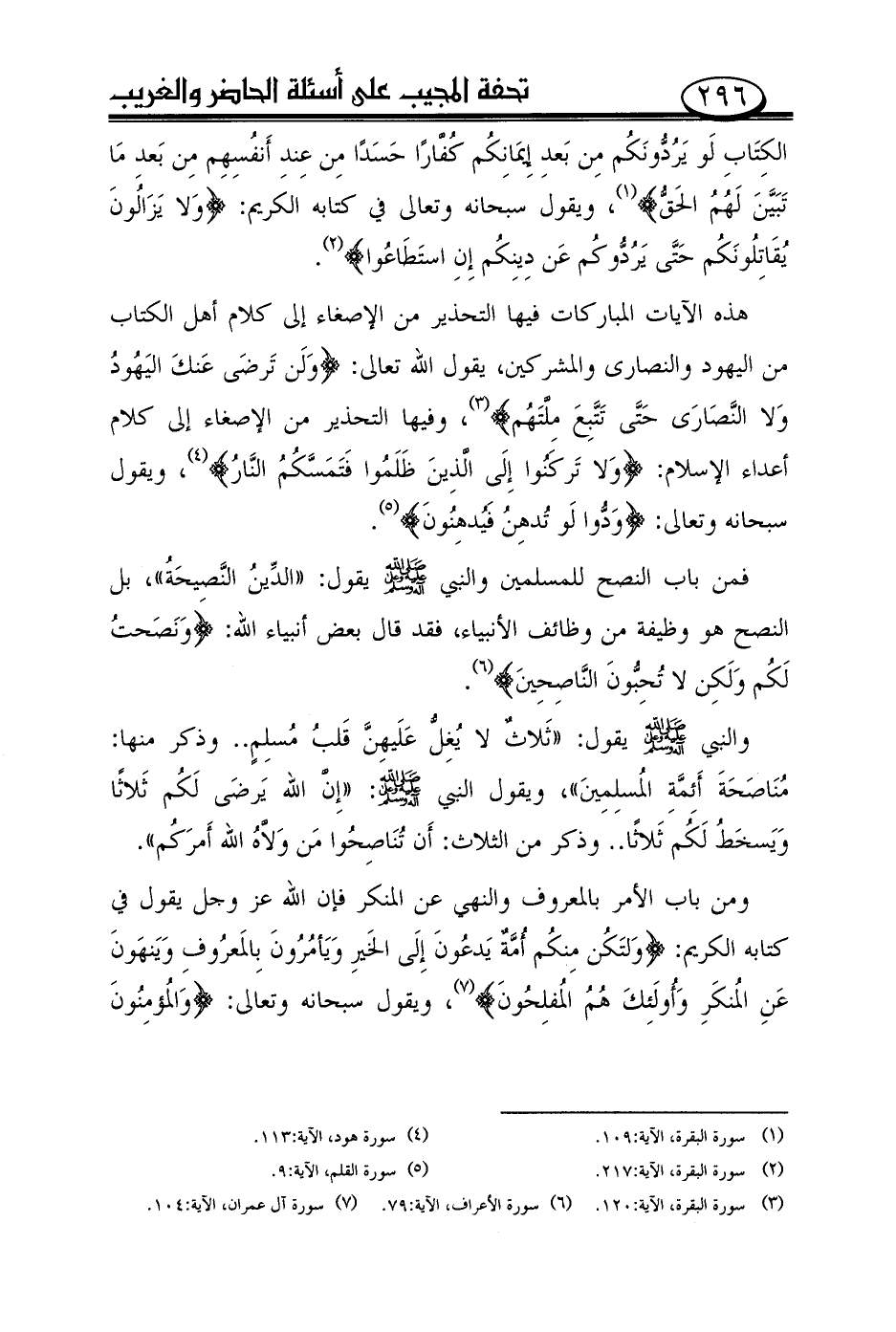 (¬3) سورة البقرة، الآية: 120. ... سورة الأعراف، الآية: 79. ... سورة آل عمران، الآية: 104.