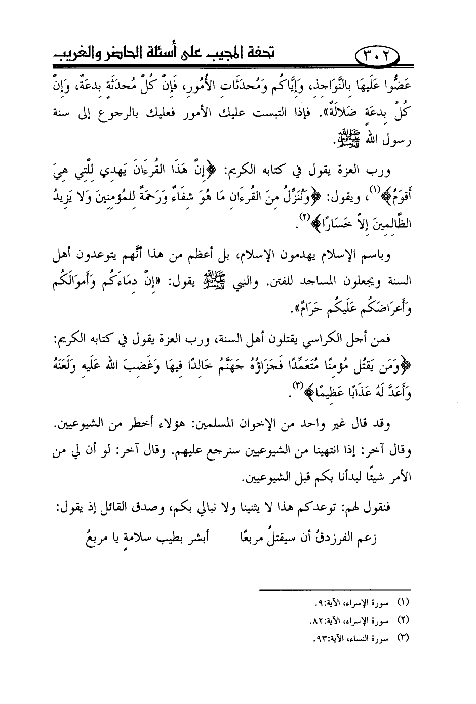 فمن أجل الكراسي يقتلون أهل السنة، ورب العزة يقول في كتابه الكريم: {ومن يقتل مؤمنًا متعمّدًا فجزاؤه جهنّم خالدًا فيها وغضب الله عليه ولعنه وأعدّ له عذابًا عظيمًا (¬3)}.