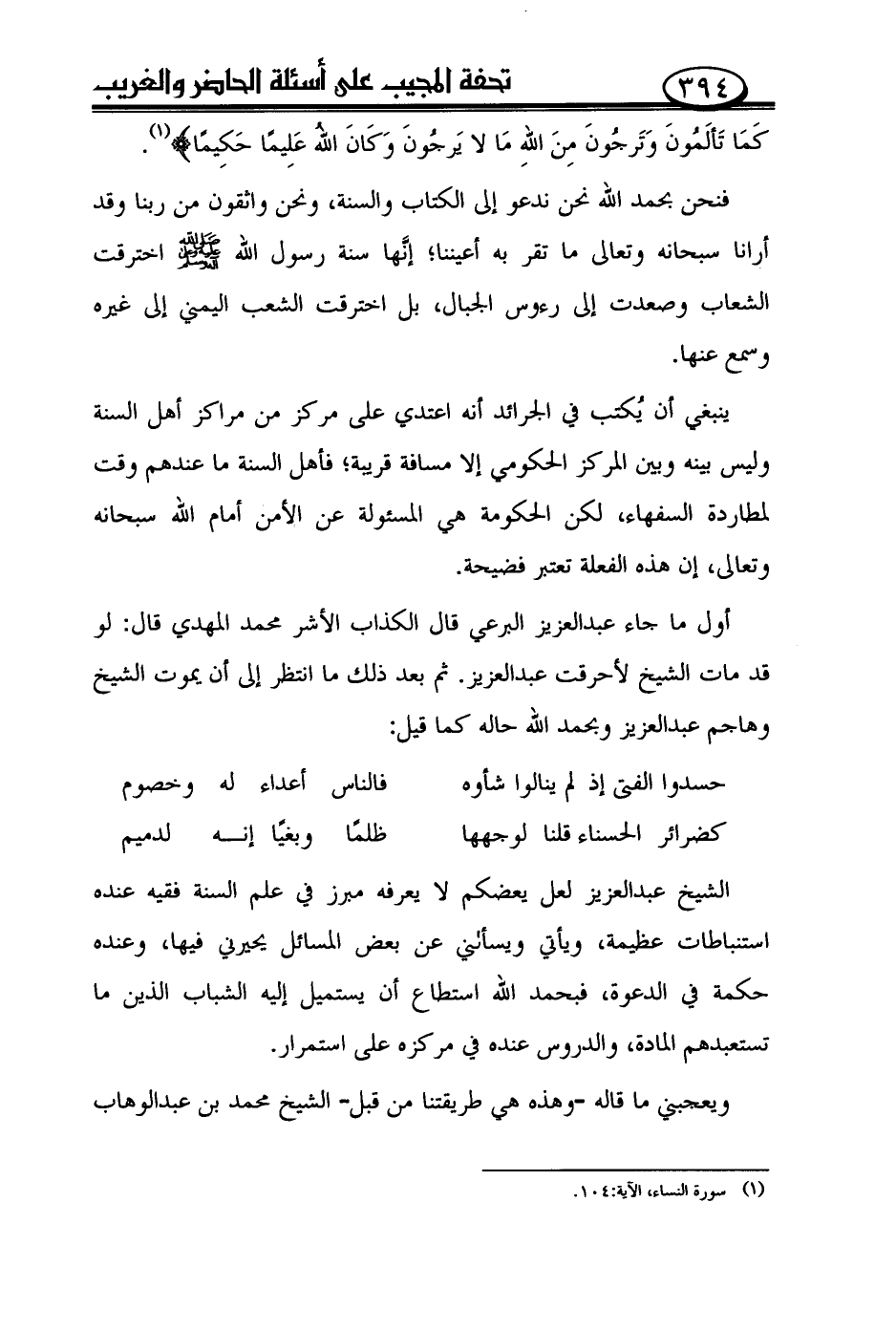 ويعجبني ما قاله وهذه هي طريقتنا من قبل الشيخ محمد بن عبد الوهاب