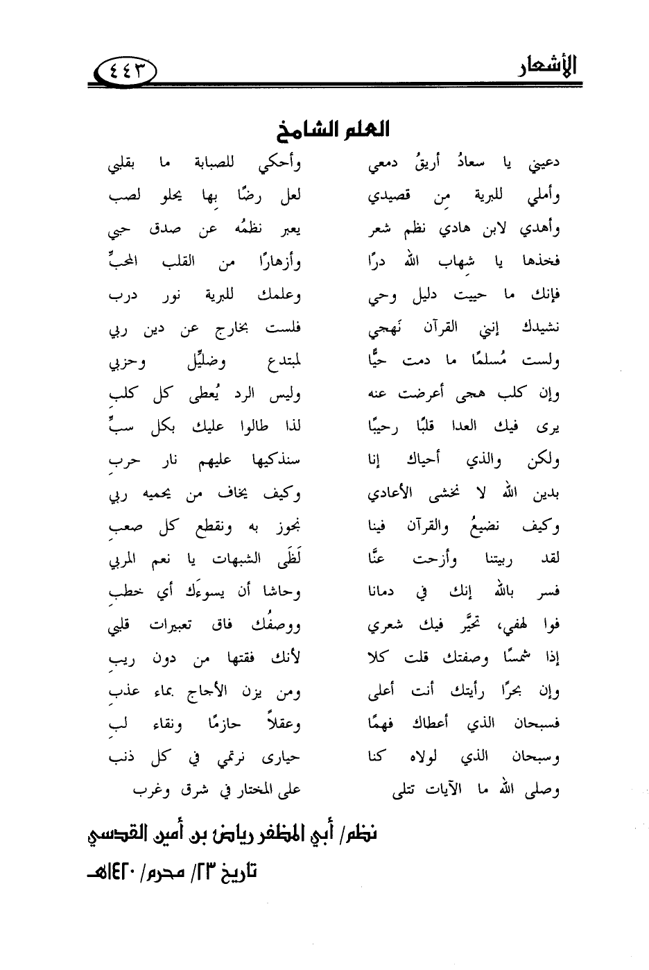 نظم/ أبي المظفر رياض بن أمين القدسي