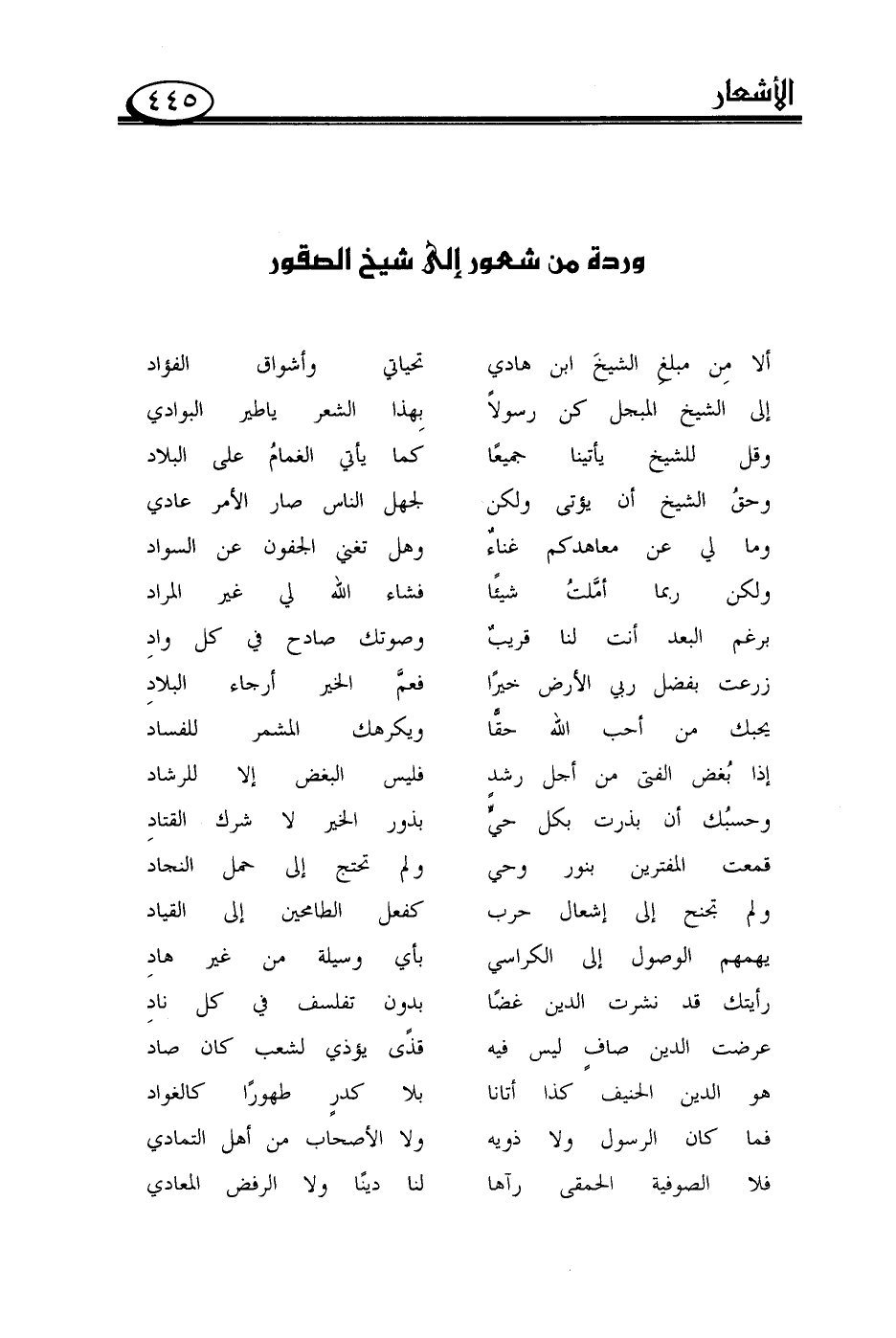 إلى الشيخ المبجل كن رسولاً ... بِهذا الشعر ياطير البوادي