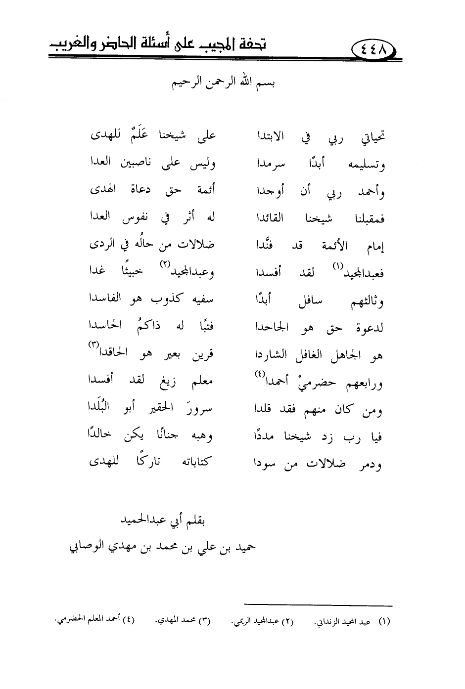ورابعهم حضرميْ أحمدا ... معلم زيغ لقد أفسدا