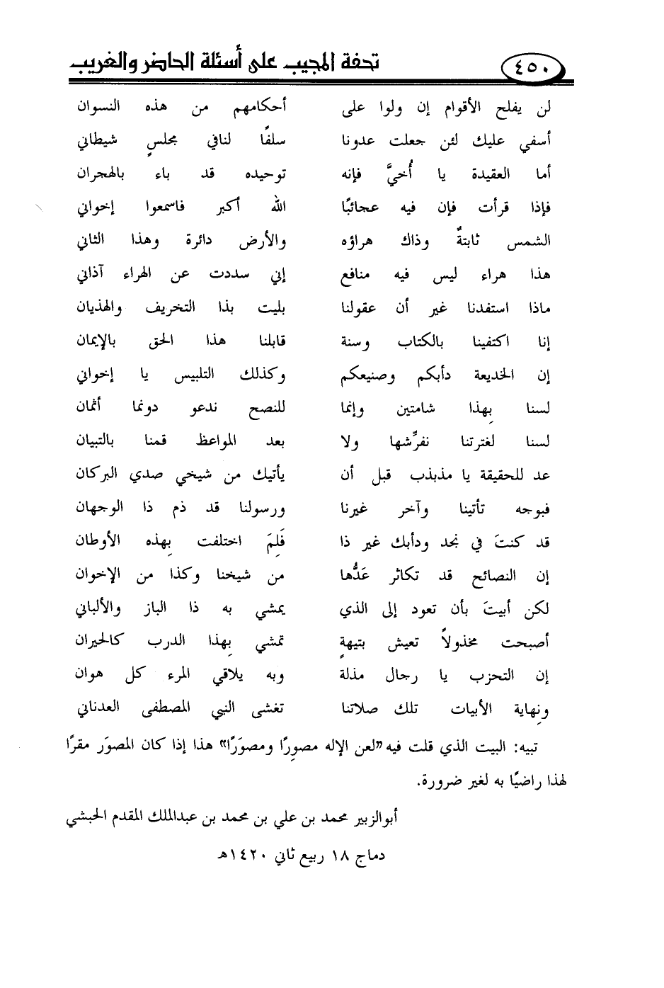 كتاب تحفة المجيب على أسئلة الحاضر والغريب