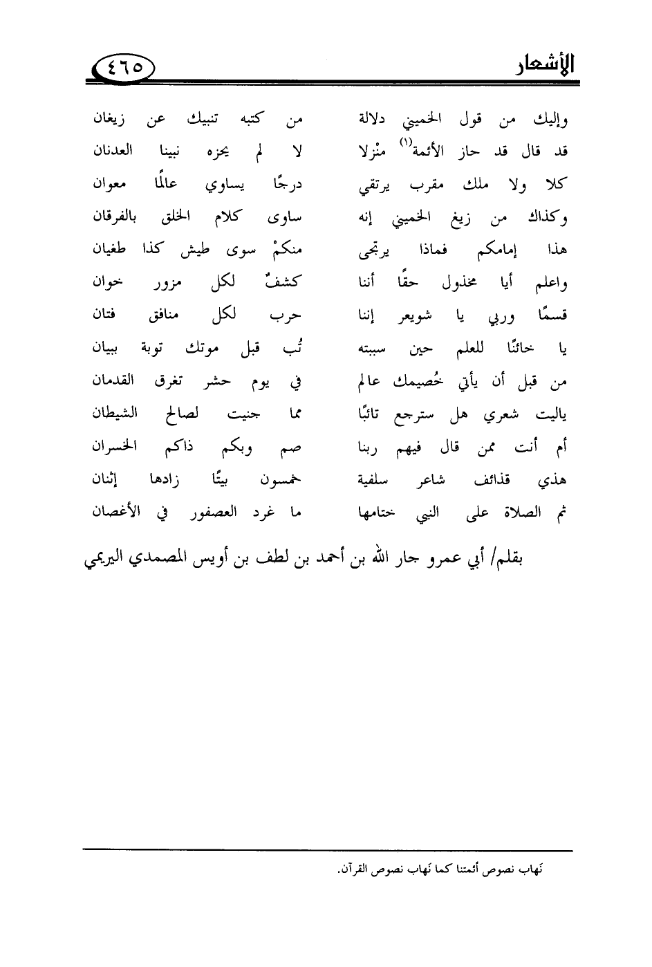وكذاك من زيغ الخميني إنه ... ساوى كلام الخلق بالفرقان