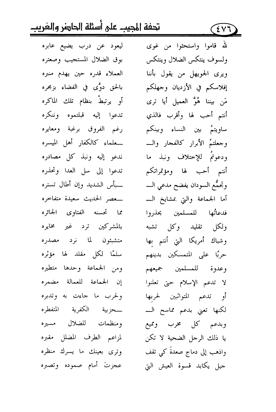 حربًا على المتمسكين بدينهم ... سلمًا لكل مقلد لها مؤثره