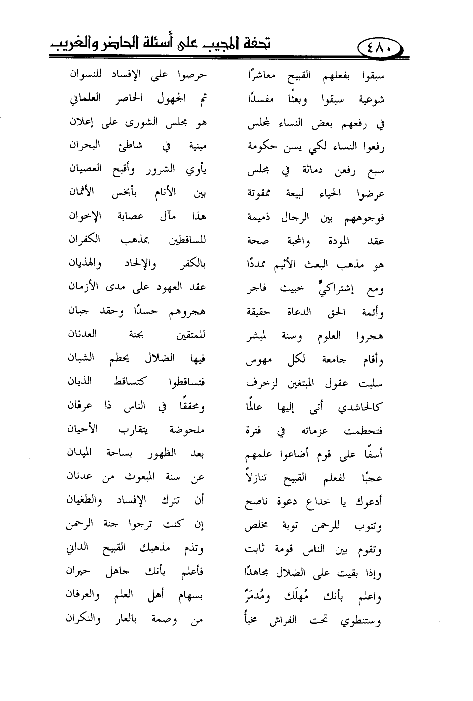 عجبًا لفعلم القبيح تنازلاً ... عن سنة المبعوث من عدنان