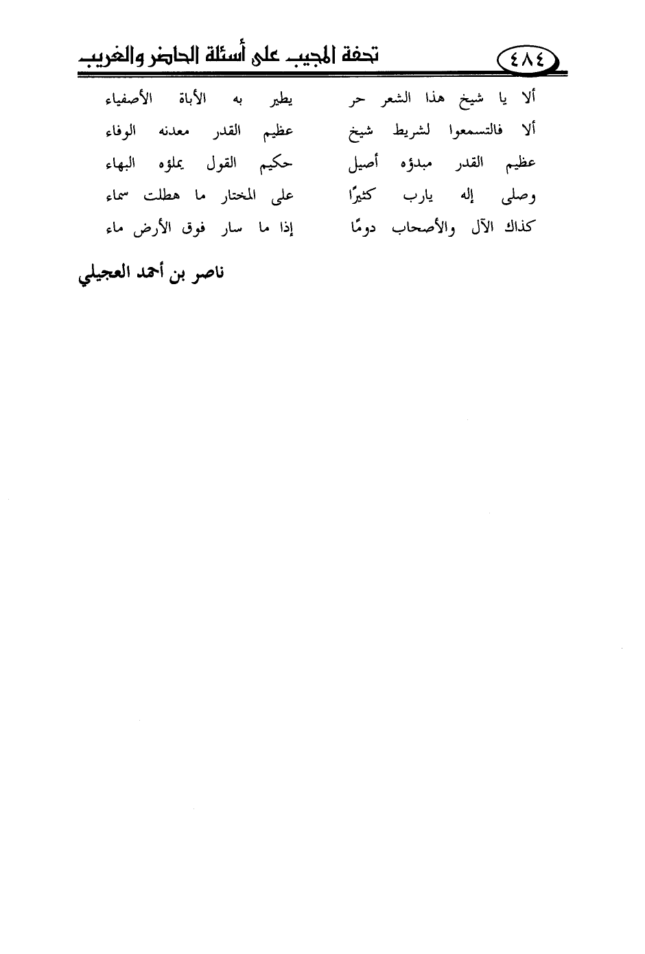ألا يا شيخ هذا الشعر حر ... يطير به الأباة الأصفياء