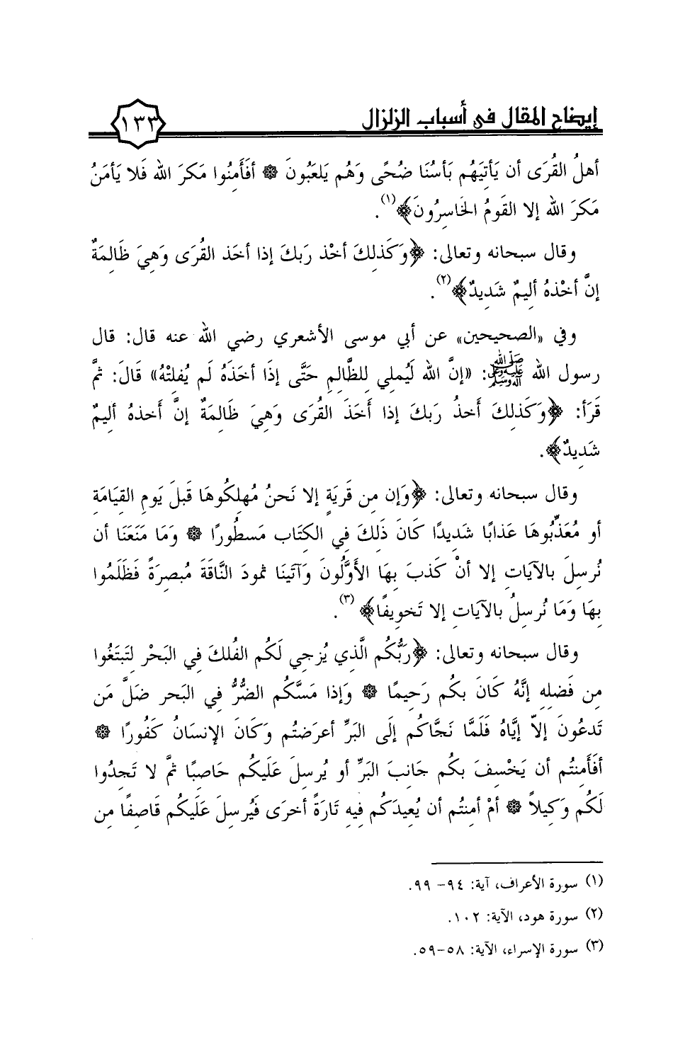(¬3) سورة الإسراء، الآية: 58 - 59.