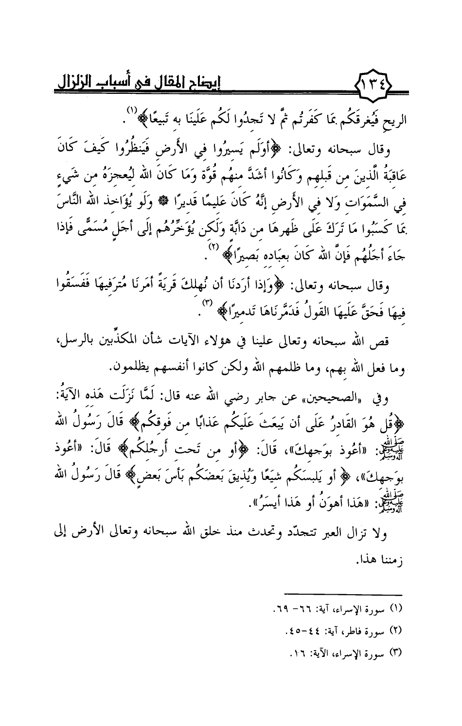 وقال سبحانه وتعالى: {وإذا أردنا أن نهلك قريةً أمرنا مترفيها ففسقوا فيها فحقّ عليها القول فدمّرناها تدميرًا} (¬3).
