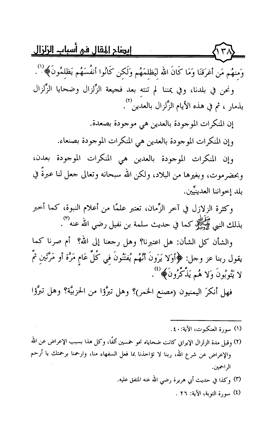(¬2) وقبل مدة الزلزال الإيراني كانت ضحاياه نحو خمسين ألفًا، وكل هذا بسبب الإعراض عن الله والإعراض عن شرع الله، ربنا لا تؤاخذنا بما فعل السفهاء منا، وارحمنا برحمتك يا أرحم الراحمين.