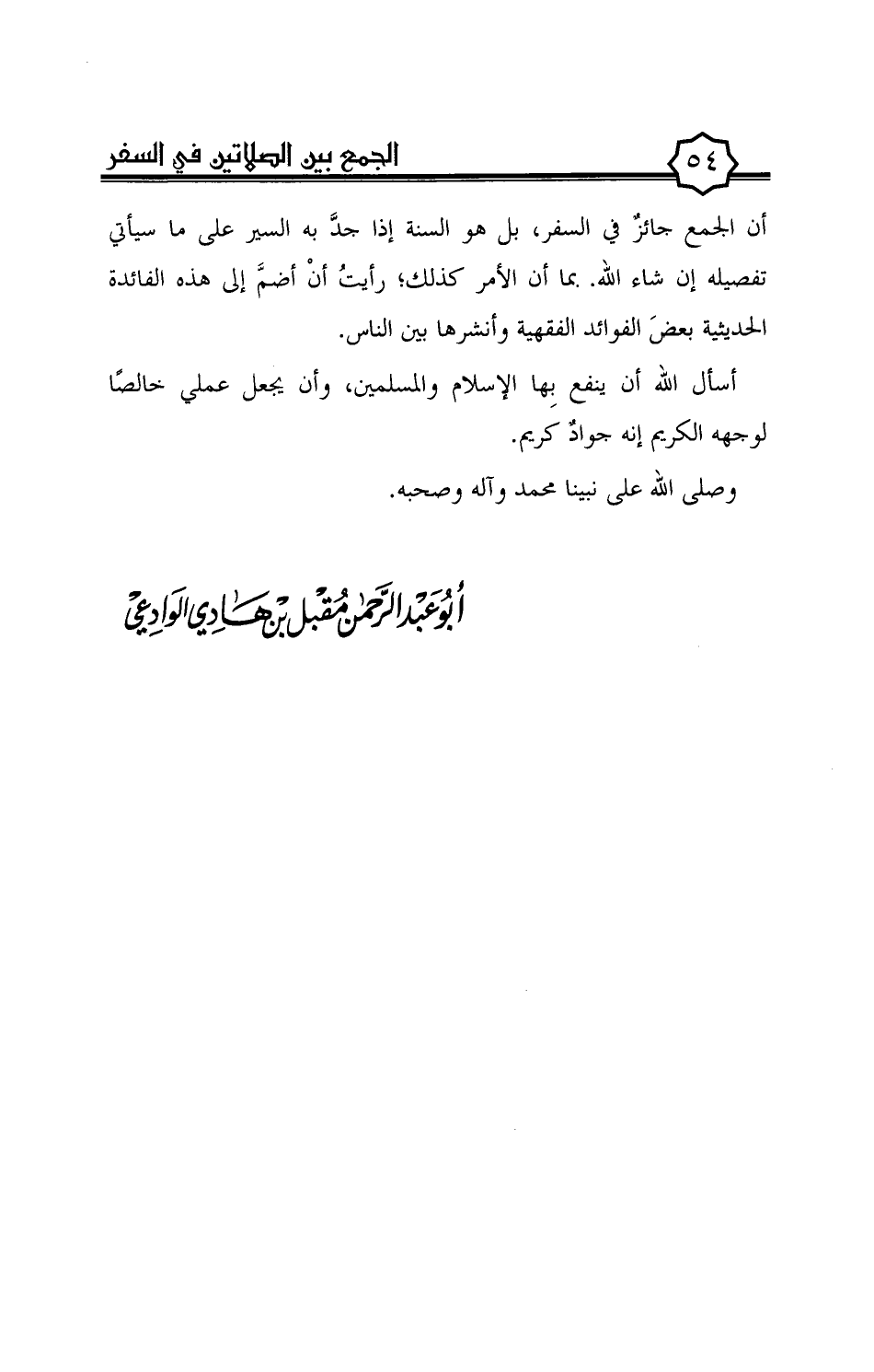 أن الجمع جائز في السفر، بل هو السنة إذا جدّ به السير على ما سيأتي تفصيله إن شاء الله. بما أن الأمر كذلك؛ رأيت أنْ أضمّ إلى هذه الفائدة الحديثية بعض الفوائد الفقهية وأنشرها بين الناس.