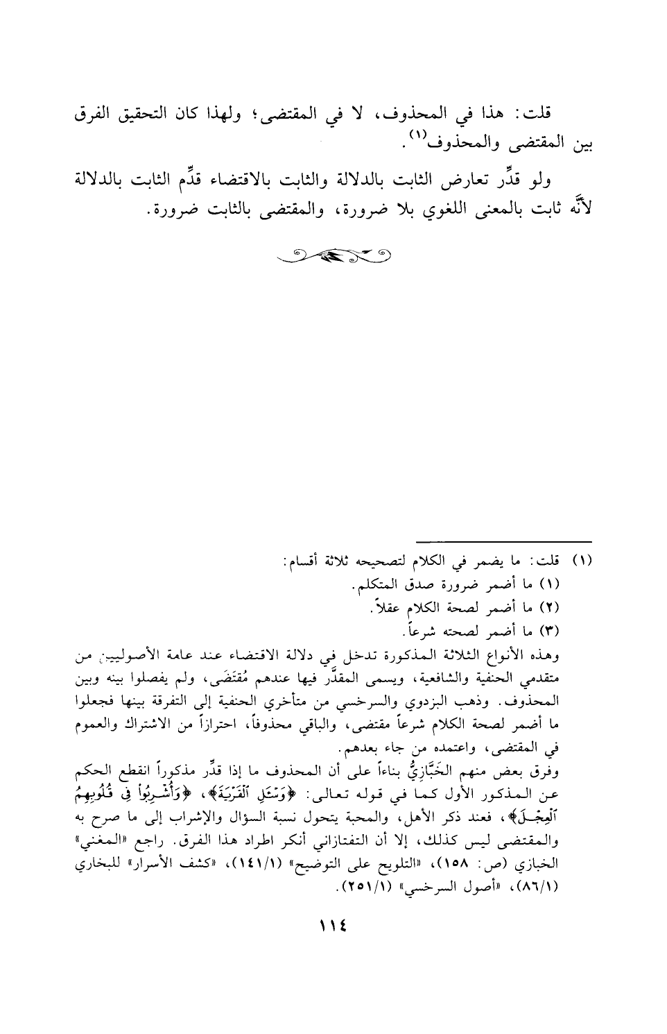 قلت: هذا في المحذوف لا في المقتضى، ولهذا كان التحقيق الفرق بين المقتضى والمحذوف.