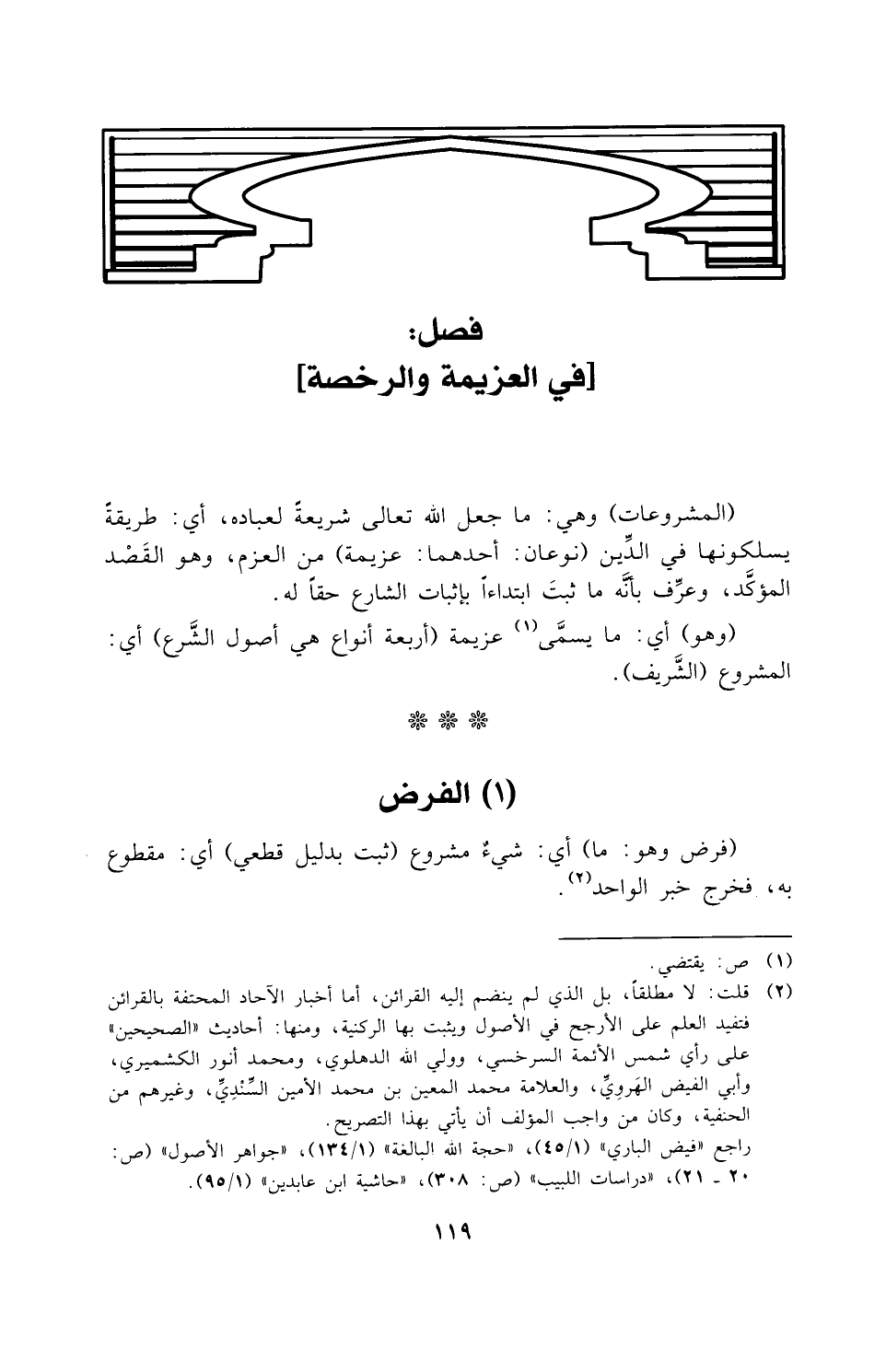أحدهما: عزيمة) من العزم، وهو القصد المؤكد، وعرف بأنه: ما ثبت ابتداء بإثبات الشارع حقاً له.