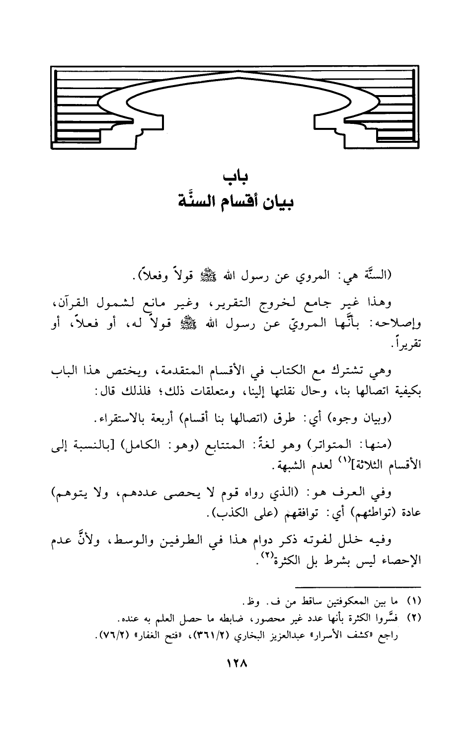 وهي تشترك مع الكتاب في الأقسام المتقدمة، ويختصّ هذا الباب بكيفية اتصالها بنا، وحال نقلها إلينا، ومتعلقات ذلك، فلذلك قال: