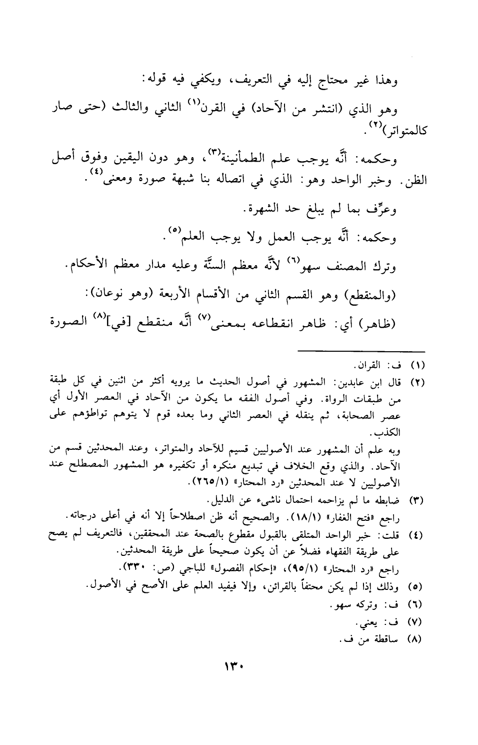 ٣ - وخبر الواحد وهو الذي في اتصاله بنا شبهة صورة ومعنى، وعرف بما لم يبلغ حد الشهرة.