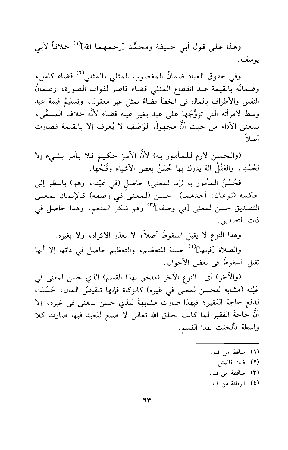 (والآخر): أي النوع الآخر (ملحق بهذا القسم) الذي حسن لمعنى في عينه (مشابه للحسن لمعنى في غيره): كالزكاة فإنها تنقيص المال، حسنت لدفع حاجة الفقير، فبهذا صارت مشابهة للذي حسن لمعنى في غيره، إلا أن حاجة الفقير لما كانت بخلق الله تعالى لا صنع للعبد فيها، صارت كلا واسطة، فألحقت بهذا القسم.