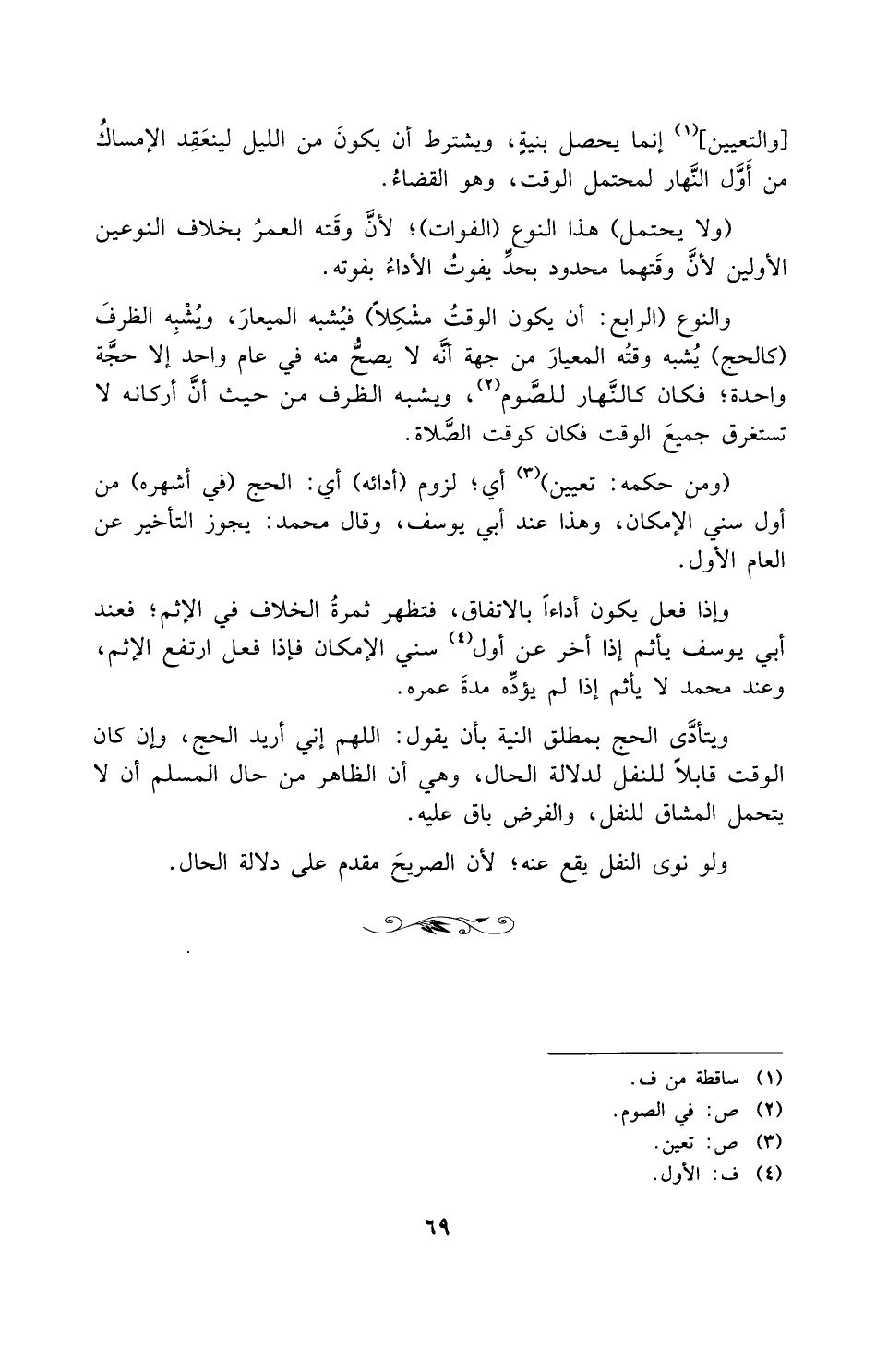 (و) النوع (الرابع: أن يكون) الوقت (مشكلاً) يشبه المعيار ويشبه الظرف (كالحج) يشبه وقته المعيار من جهة أنه لا يصح منه في عام واحد إلا حجّة واحدة، فكان كالنهار في الصوم، ويشبه الظرف من حيث أن أركانَه لا تستغرق جميع الوقت، فكان كوقت الصلاة.