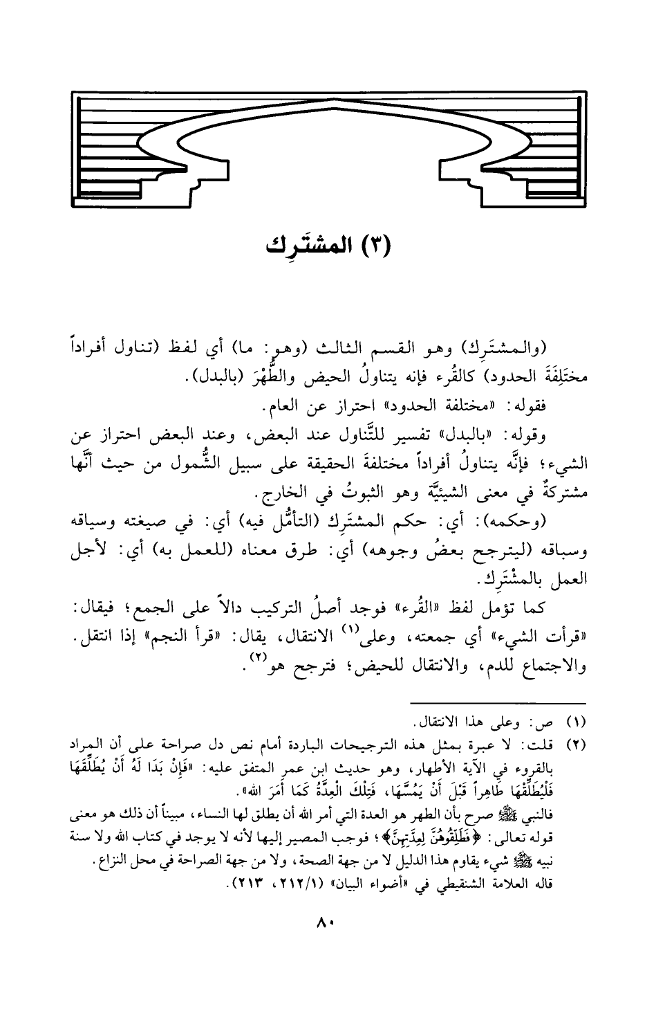 (والمشترك) وهو القسم الثالث (وهو ما): أي لفظ (تناول أفراداً مختلفة الحدود) كالقرء، فإنه يتناول الحيض والطهر (بالبدل).