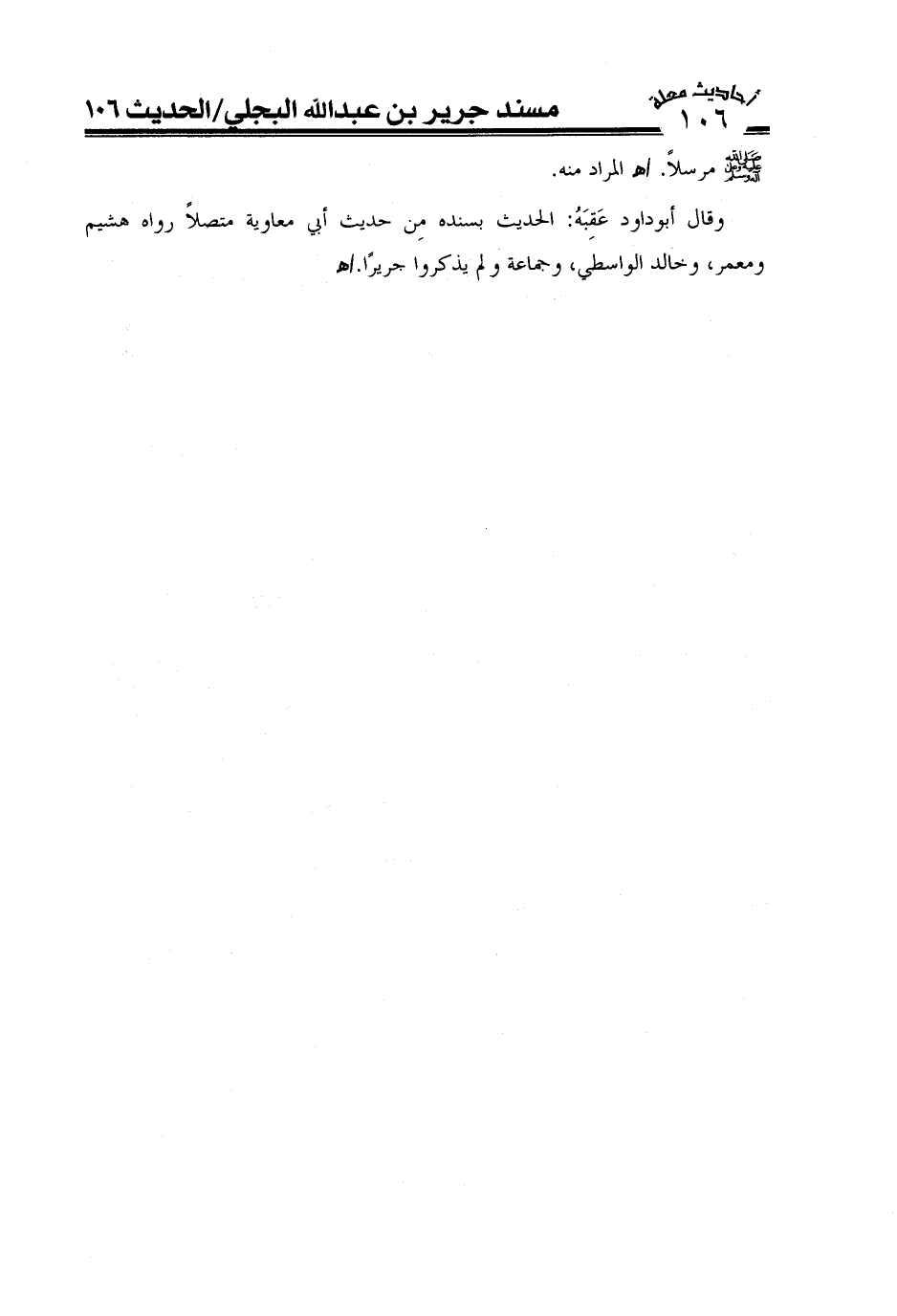 وقال أبو داود عقبه: الحديث بسنده من حديث أبى معاوية متصلاً رواه هشيم ومعمر، وخالد الواسطي، وجماعة لم يذكروا جريراً. اهـ