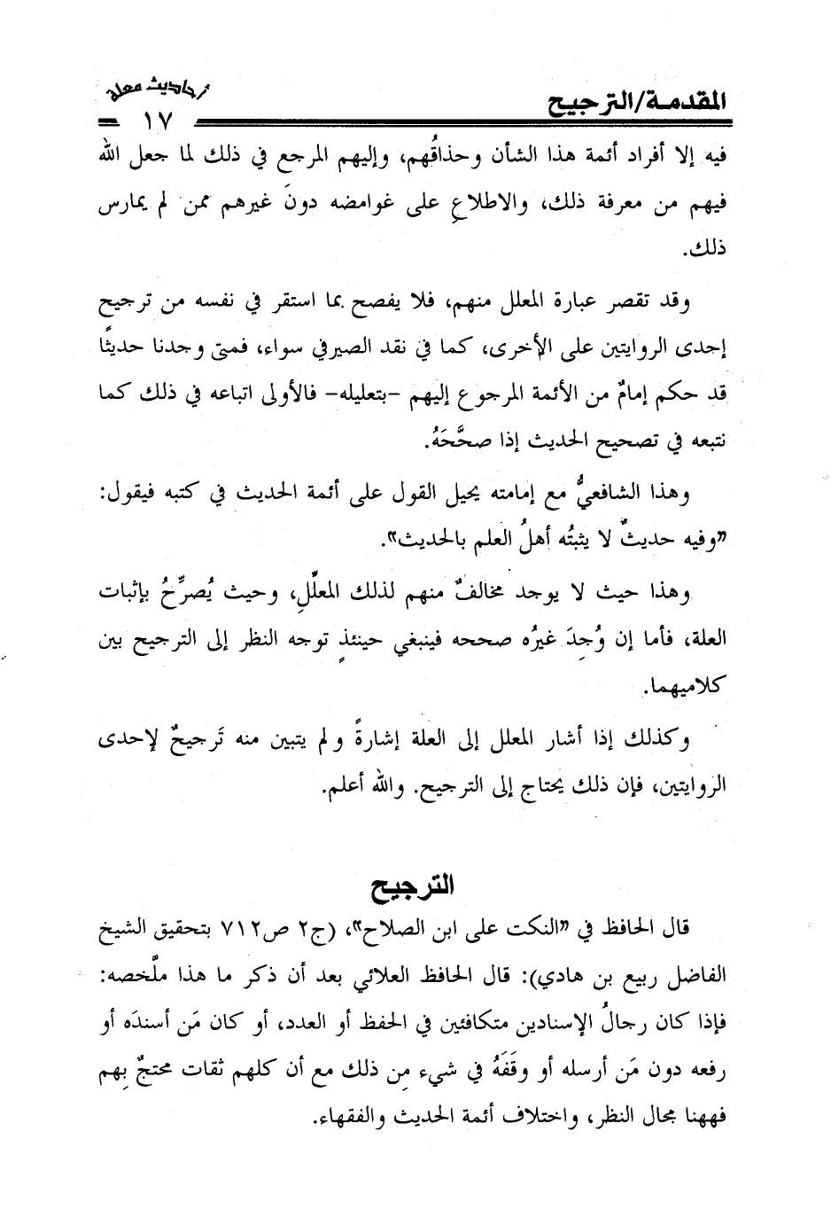 وقد تقصر عبارة المعلِّل منهم، فلا يفصح بما استقر في نفسه من ترجيح إحدى الروايتين على الأخرى كما في نقد الصيرفي سواء، فمتى وجدنا حديثا قد حكم إمام من الأئمة المرجوع إليهم - بتعليله - فالأولى إتباعه في ذلك كما نتبعه في تصحيح الحديث إذا صححه.