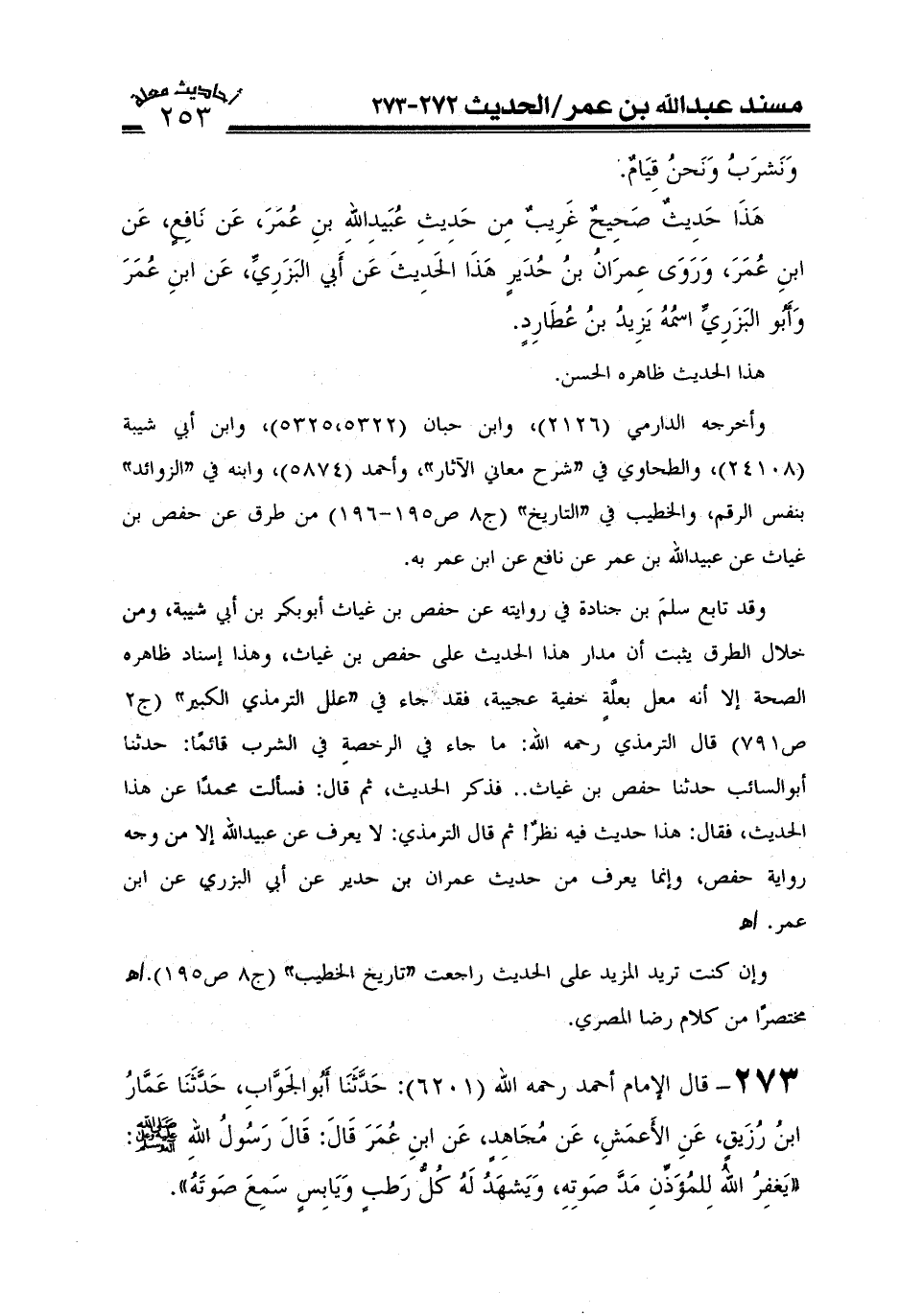 وأخرجه الدارمي (2126) وابن حبان (5322، 5325) وابن أبي شيبة (24108) والطحاوي في "شرح معاني الآثار" وأحمد (5874) وابنه في "الزوائد" بنفس الرقم، والخطيب في "التاريخ" (ج8ص195-196) من طريق حفص بن غياث عن عبيد الله بن عمر عن نافع عن ابن عمر به.