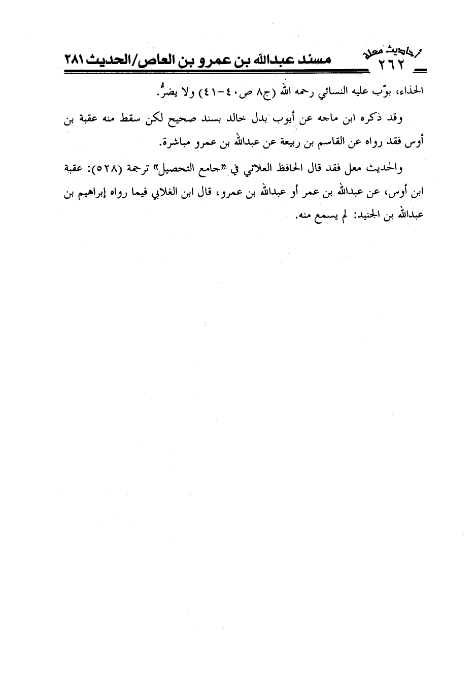وقد ذكره ابن ماجة عن أيوب بدل خالد بسند صحيح لكن سقط منه عقبة ابن أوس فقد رواه عن القاسم بن ربيعة عن عبد الله بن عمرو مباشرة.