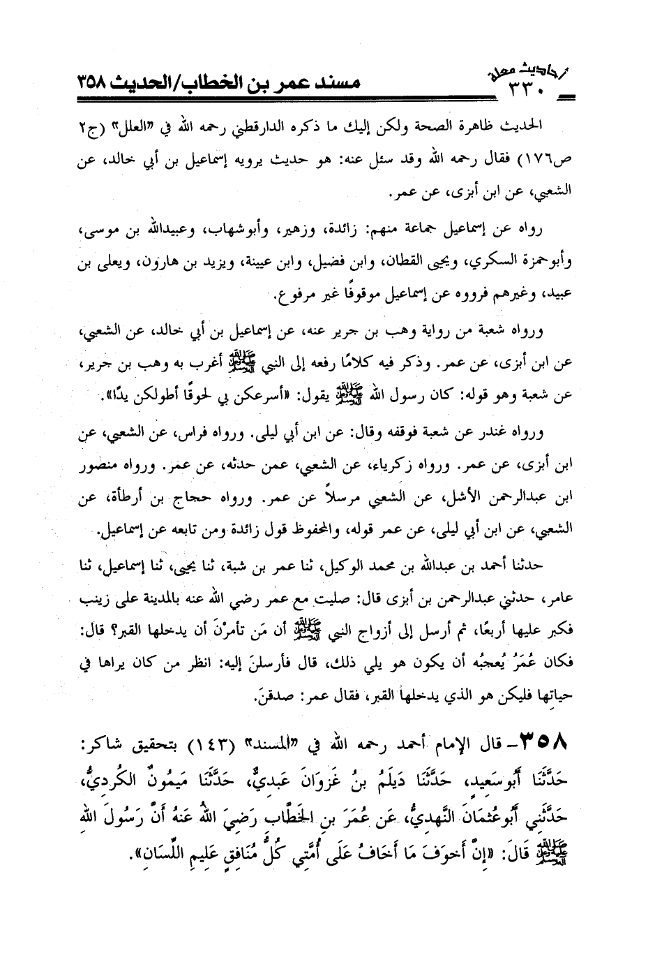 ورواه حجاج بن أرطاة، عن الشعبي، عن ابن أبي ليلى، عن عمر، قوله والمحفوظ قول زايدة، ومن تابعه عن إسماعيل.