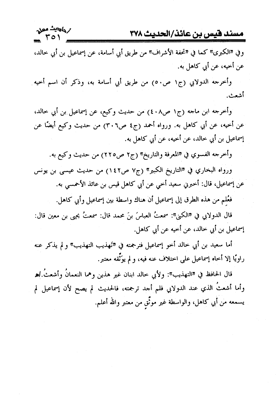 ورواه البخاري في "التاريخ الكبير" (ج7ص142) من حديث عيسى بن يونس عن إسماعيل بن أبي خالد قال أخبرني سعيد أخي عن أبي كاهل قيس بن عائذ الأحمسي به.