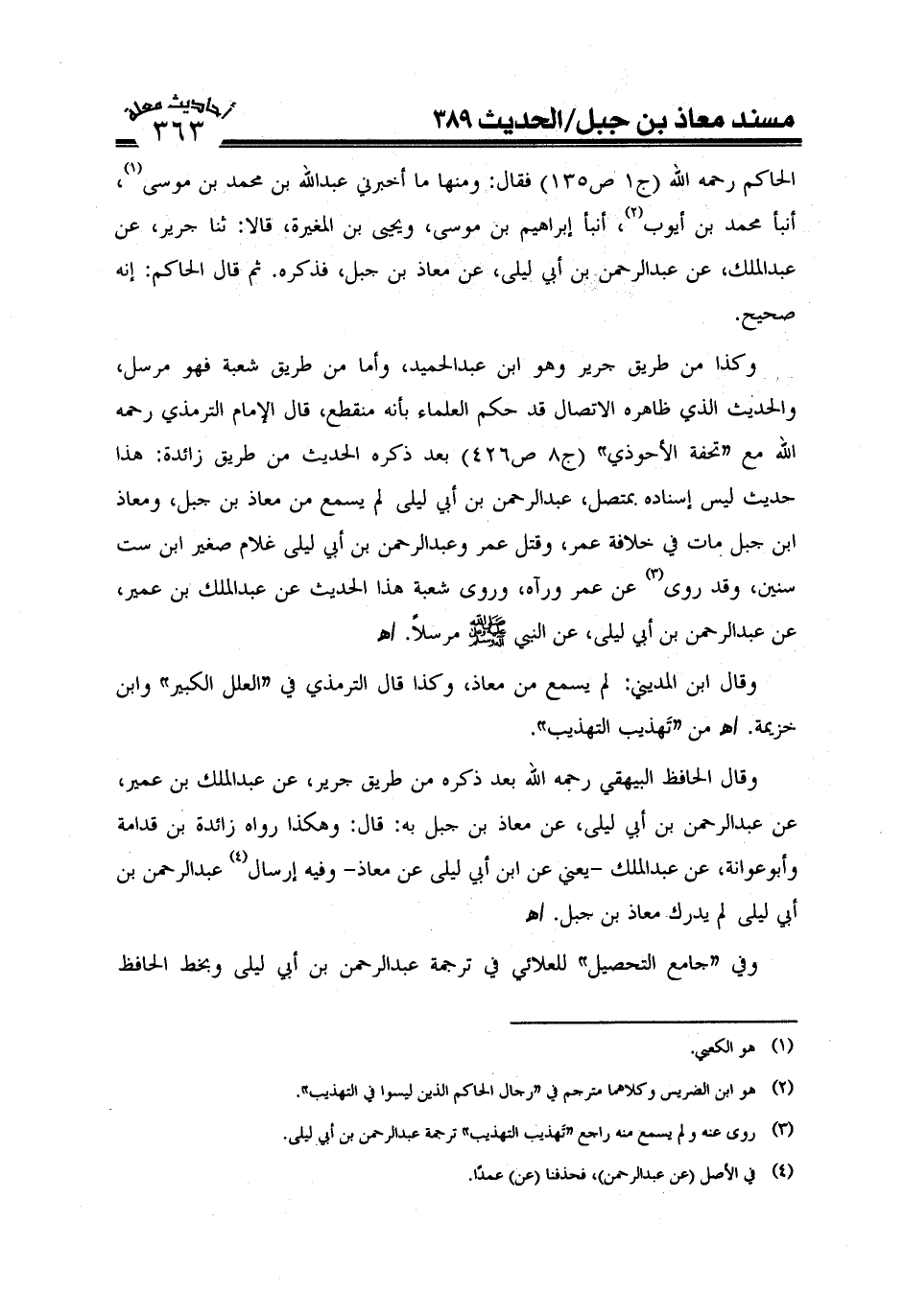وقال الحافظ البيهقي رحمه الله بعد ذكره من طريق جرير عن عبد الملك بن عمير عبد الرحمن بن أبي ليلى عن معاذ بن جبل به: وهكذا رواه زائدة بن قدامة وأ بو عوانة عن عبد الملك وفيه إرسال (¬4) عبد الرحمن بن أبي ليلى لم يدرك معاذ بن جبل. اهـ