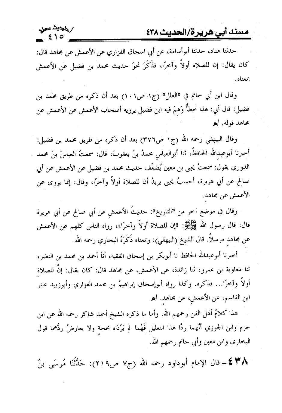 438- قال الإمام أبو داود رحمه الله (ج7ص219) حدثنا مُوسَى بنُ