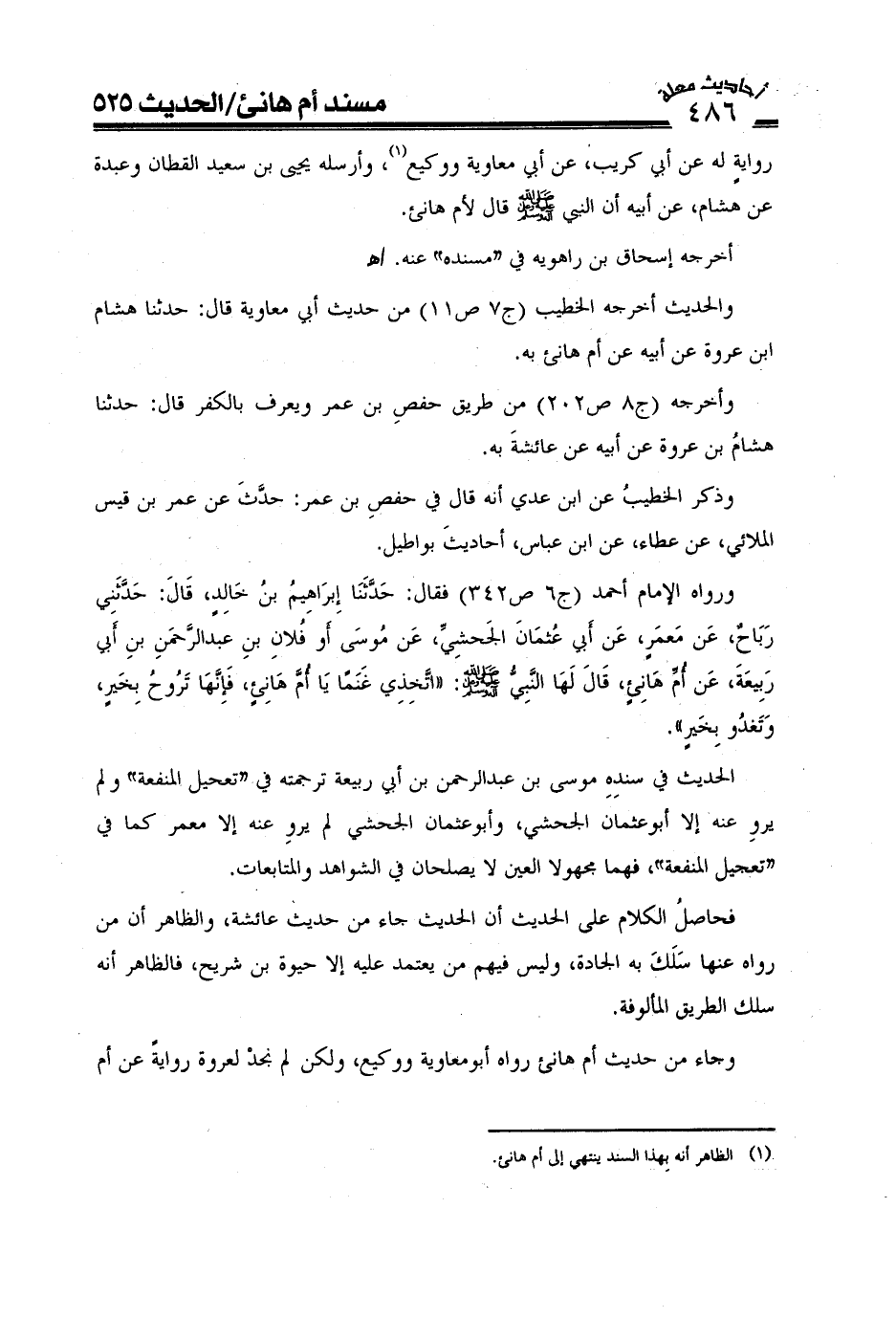 (¬1) الظاهر أنه بهذا السند ينتهي إلى أم هانئ.