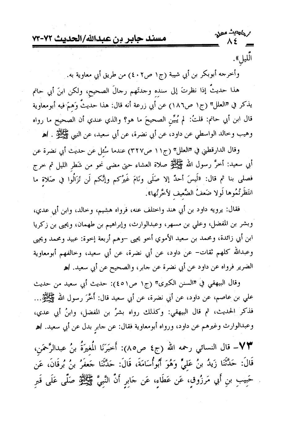 وقال البيهقي في "السنن الكبرى " (ج1ص451) : حديث أبي سعيد من حديث علي بن عاصم عن داود عن أبي نضرة عن أبي سعيد قال: أخر رسول الله....فذكر الحديث، ثم قال البيهقي: وكذلك رواه بشر بن المفضل وابن أبي عدي وعبد الوارث وغيرهم عن داود ورواه أبو معاوية عن داود فقال عن جابر بدل أبي سعيد. اهـ