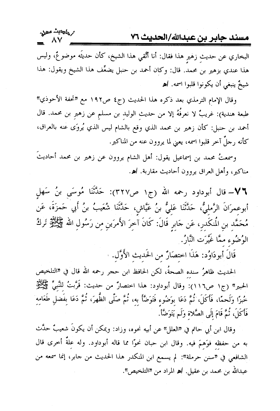 وقال الإمام الترمذي بعد ذكره هذا الحديث (ج4ص192مع "تحفة الأحوذي" طبعة هندية) : غَرِيبٌ لَا نَعْرِفُهُ إِلَّا مِنْ حَدِيثِ الْوَلِيدِ بْنِ مُسْلِمٍ عَنْ زُهَيْرِ بْنِ مُحَمَّدٍ قَالَ ابْنُ حَنْبَلٍ كَأَنَّ زُهَيْرَ بْنَ مُحَمَّدٍ الَّذِي وَقَعَ بِالشَّامِ لَيْسَ هُوَ الَّذِي يُرْوَى عَنْهُ بِالْعِرَاقِ كَأَنَّهُ رَجُلٌ آخَرُ قَلَبُوا اسْمَهُ يَعْنِي لِمَا يَرْوُونَ عَنْهُ مِنْ الْمَنَاكِيرِ. وسَمِعْت مُحَمَّدَ بْنَ إِسْمَاعِيلَ الْبُخَارِيَّ يَقُولُ: أَهْلُ الشَّامِ يَرْوُونَ عَنْ زُهَيْرِ بْنِ مُحَمَّدٍ مَنَاكِيرَ وَأَهْلُ الْعِرَاقِ يَرْوُونَ عَنْهُ أَحَادِيثَ مُقَارِبَةً. اهـ