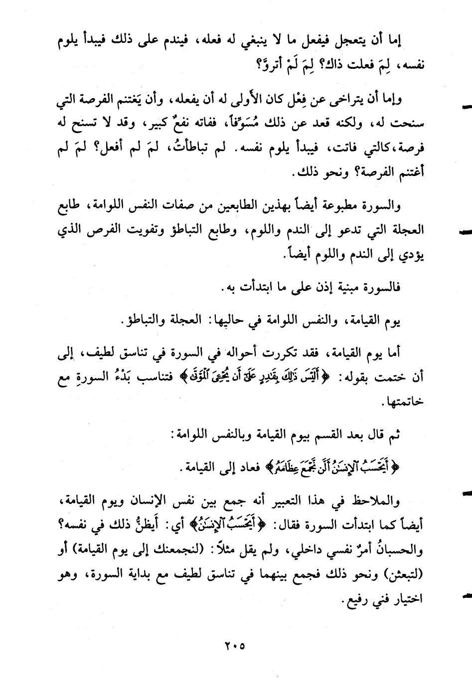 وهذا الحذف يتناسب هو والعجلة التي دلّت عليها النفس اللوامة وجَوّها - أعني جو العجلة - الذي طبعت به السورة.