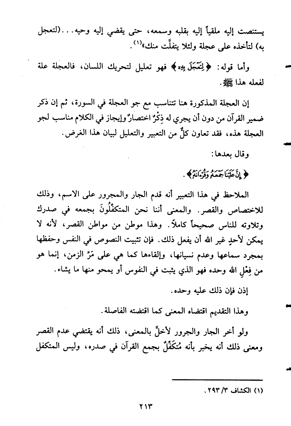 وهذا موطن قصر، إذ لا يمكن أن يفعل ذلك غير الله تعالى، أعني التكفل بتثبيت القرآن في النفس بمجرد سماعه.