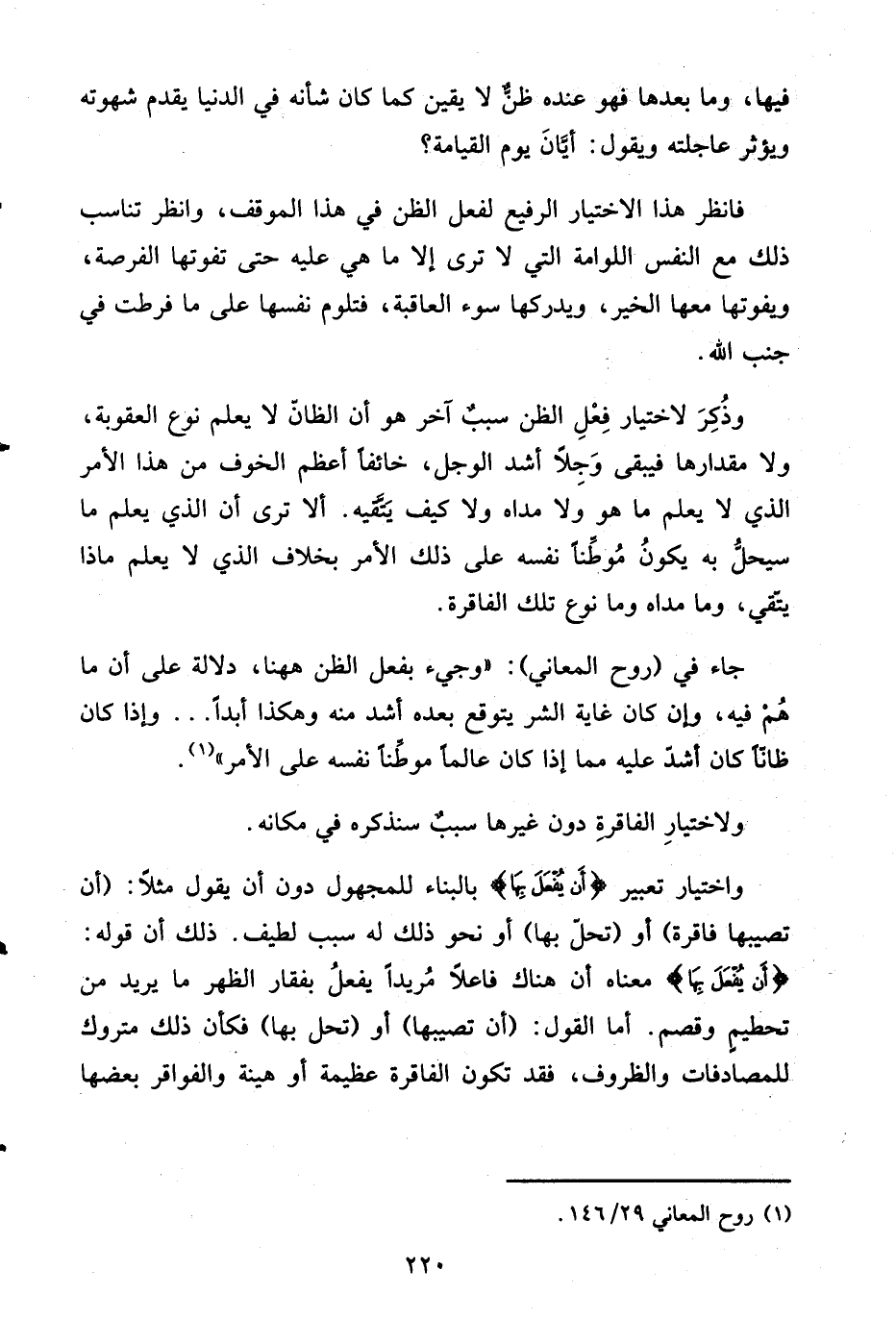 فانظر هذا الاختيار الرفيع لفعل الظن في هذا الموقف، وانظر تناسب ذلك مع النفس اللوامة التي لا ترى إلا ما هي عليه حتى تفوتها الفرصة، ويفوتها معها الخير، ويدركها سوء العاقبة، فتلوم نفسها على ما فرطت في جنب الله.