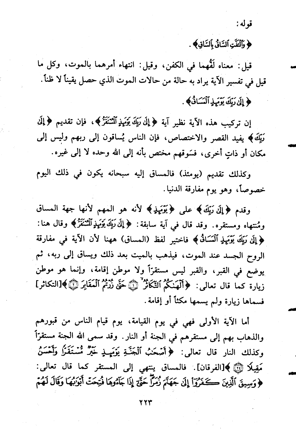 أما الآية الأولى فهي في يوم القيامة، يوم قيام الناس من قبورهم والذهاب بهم إلى مستقرهم في الجنة أو النار. وقد سمى الله الجنة مستقرّاً وكذلك النار قال تعالى: {أَصْحَابُ الجنة يَوْمَئِذٍ خَيْرٌ مُّسْتَقَرّاً وَأَحْسَنُ مَقِيلاً} [الفرقان: 24] . فالمساق ينتهي إلى المستقر كما قال تعالى: {وَسِيقَ الذين كفروا إلى جَهَنَّمَ زُمَراً حتى إِذَا جَآءُوهَا فُتِحَتْ أَبْوَابُهَا وَقَالَ لَهُمْ