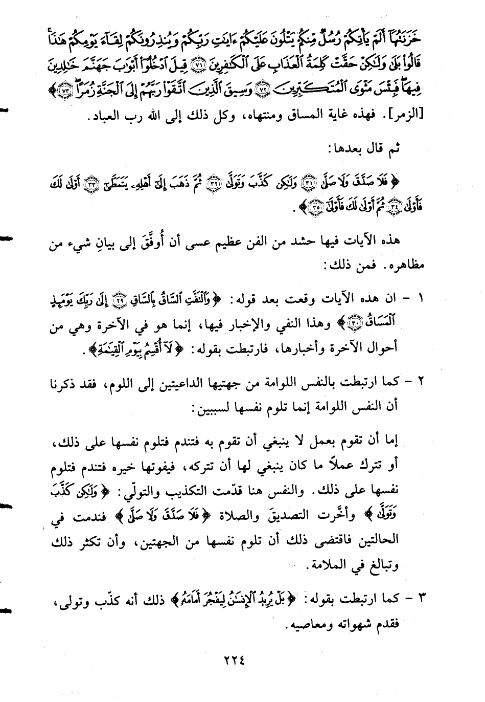 3- كما ارتبطت بقوله: {بَلْ يُرِيدُ الإنسان لِيَفْجُرَ أَمَامَهُ} ذلك أنه كذّب وتولى، فقدم شهواته ومعاصيه.
