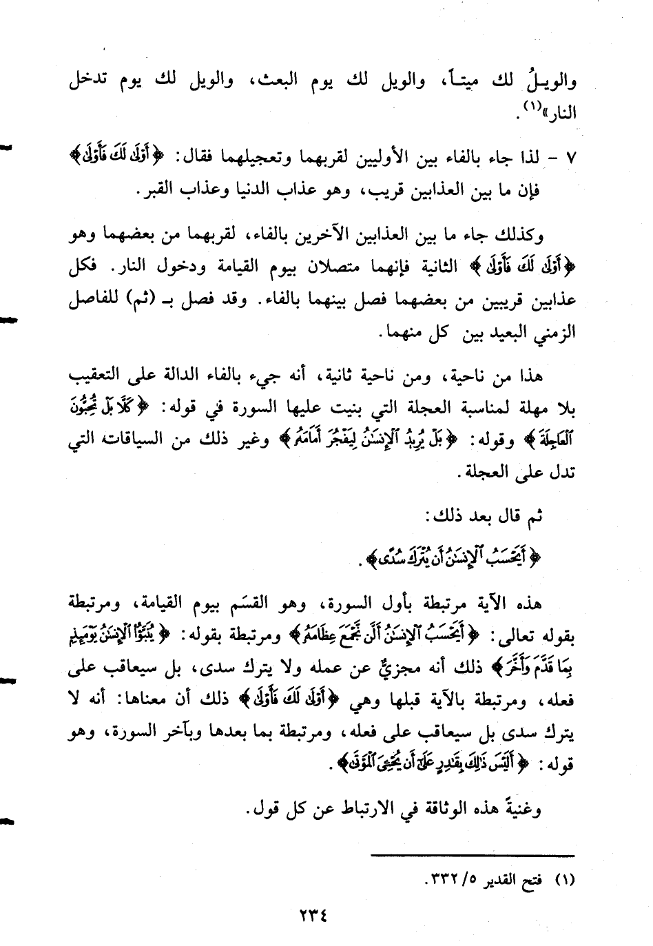 7- لذا جاء بالفاء بين الأوليين لقربهما وتعجيلهما فقال: {أولى لَكَ فأولى} فإن ما بين العذابين قريب، وهو عذاب الدنيا وعذاب القبر.