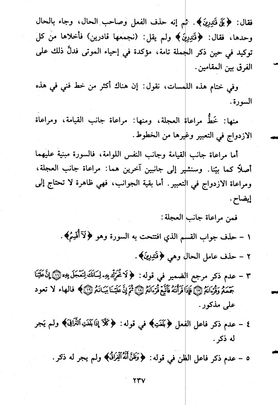 أما مراعاة جانب القيامة وجانب النفس اللوامة، فالسورة مبنية عليهما أصلاً كما بيّنا. وسنشير إلى جانبين آخرين هما: مراعاة جانب العجلة، ومراعاة الازدواج في التعبير. أما بقية الجوانب، فهي ظاهرة لا تحتاج إلى إيضاح.
