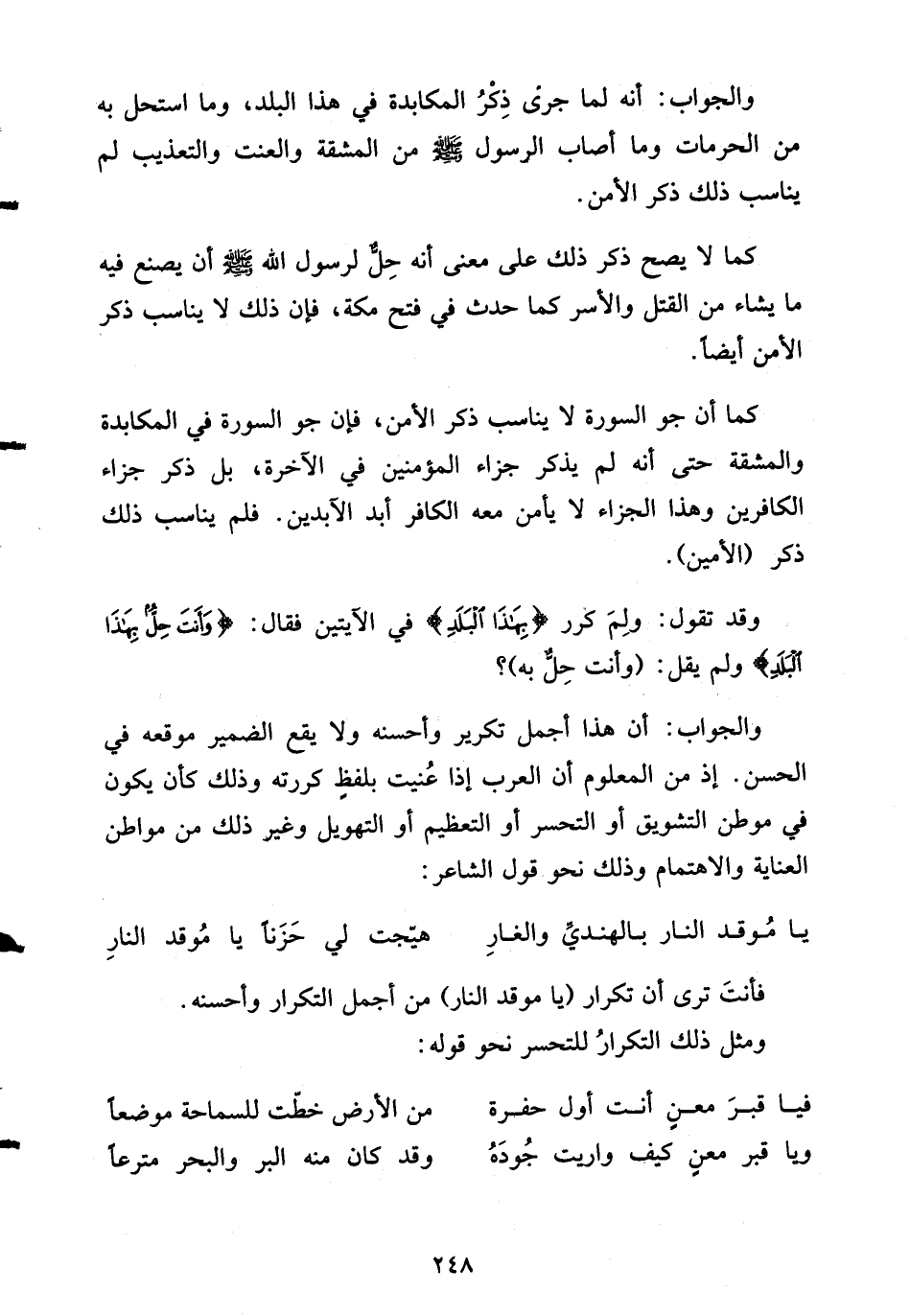وقد تقول: ولِمَ كرر {بهاذا البلد} في الآيتين فقال: {وَأَنتَ حِلٌّ بهاذا البلد} ولم يقل: (وأنت حِلٌّ به) ؟