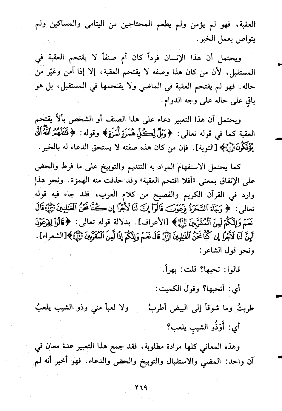 العقبة، فهو لم يؤمن ولم يطعم المحتاجين من اليتامى والمساكين ولم يتواص بعمل الخير.