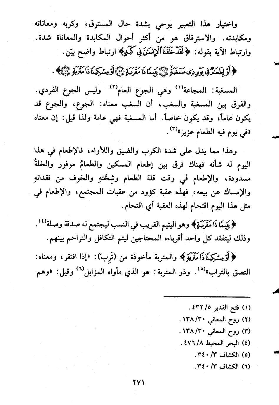 {أَوْ إِطْعَامٌ فِي يَوْمٍ ذِي مَسْغَبَةٍ * يَتِيماً ذَا مَقْرَبَةٍ * أَوْ مِسْكِيناً ذَا مَتْرَبَةٍ} .