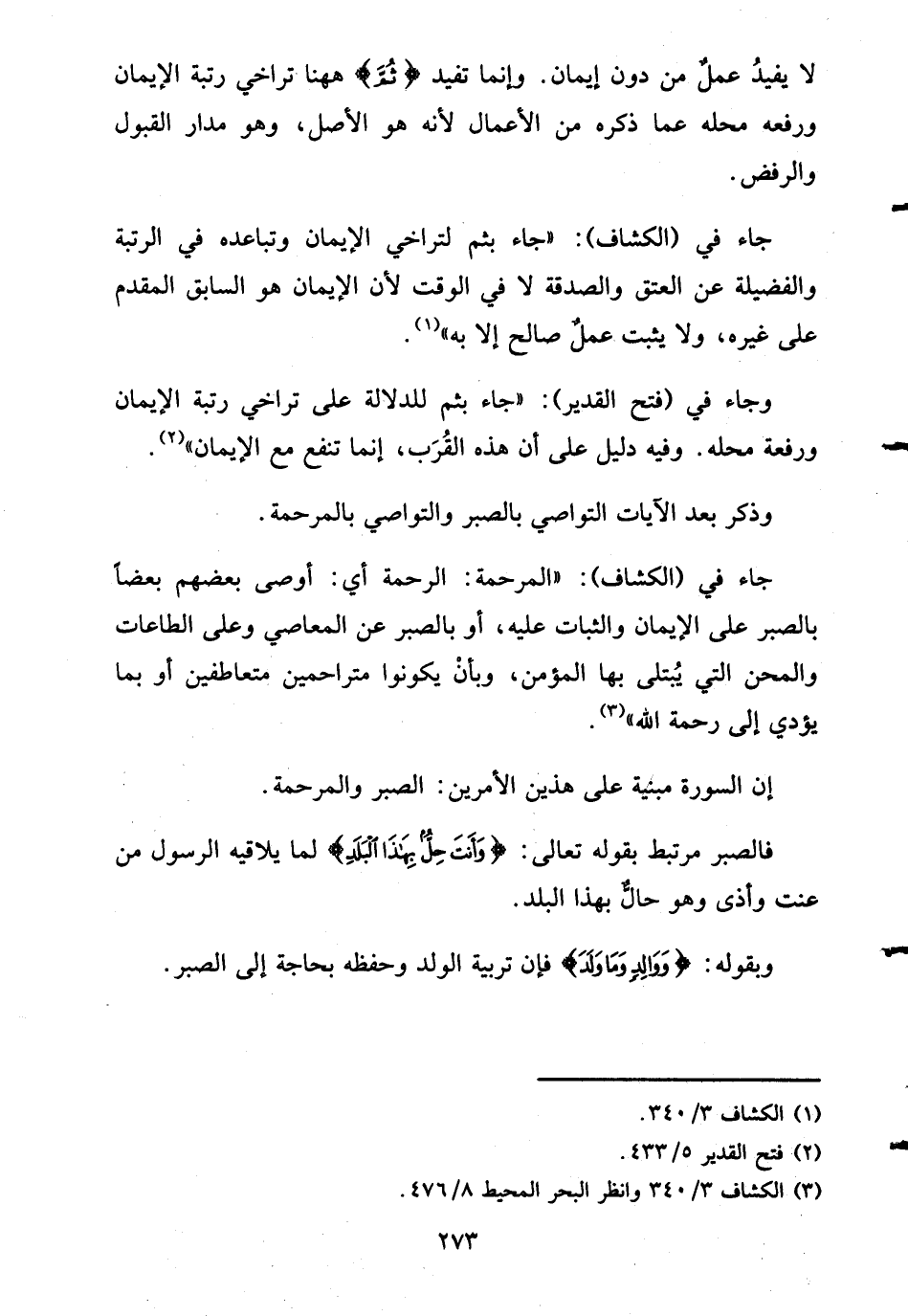 جاء في (الكشاف) : "جاء بثم لتراخي الإيمان وتباعده في الرتبة والفضيلة عن العتق والصدقة لا في الوقت لأن الإيمان هو السابق المقدم على غيره، ولا يثبت عملٌ صالح إلا به".