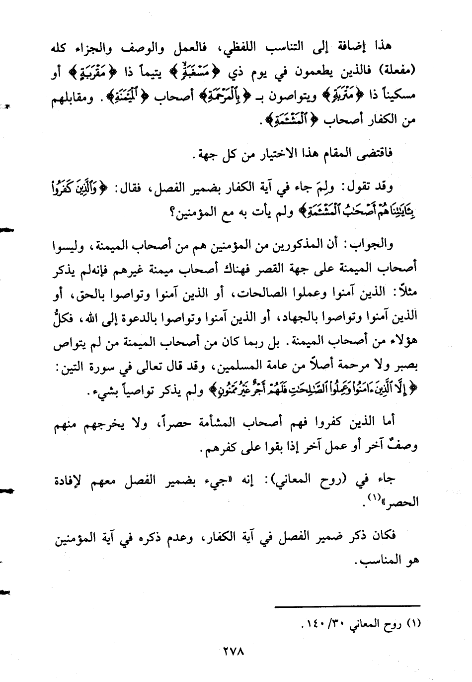 فكان ذكر ضمير الفصل في آية الكفار، وعدم ذكره في آية المؤمنين هو المناسب.