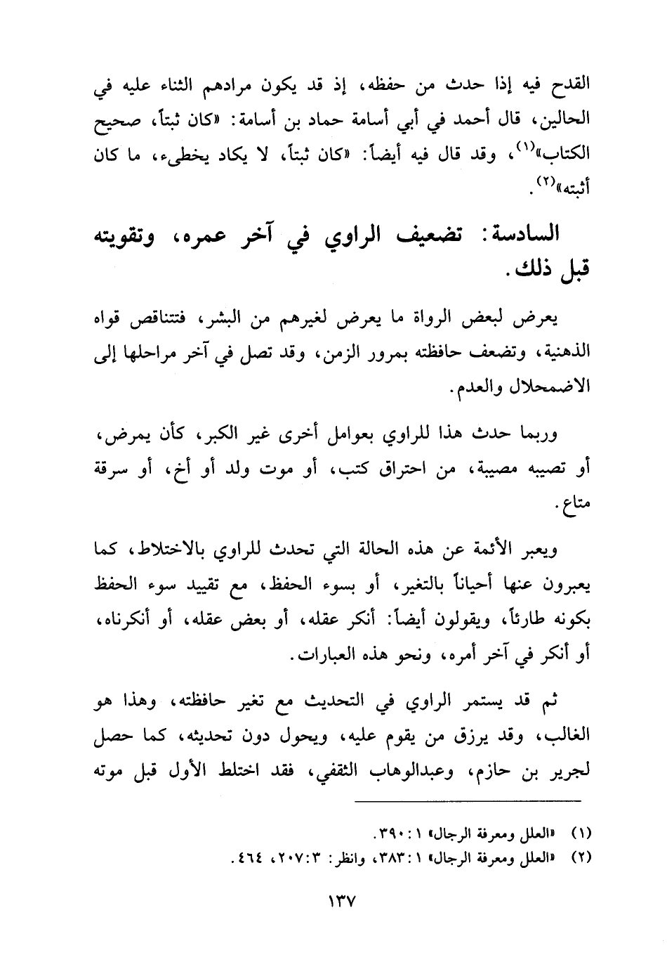 (¬٢) "العلل ومعرفة الرجال"١: ٣٨٣، وانظر: ٣: ٢٠٧، ٤٦٤.