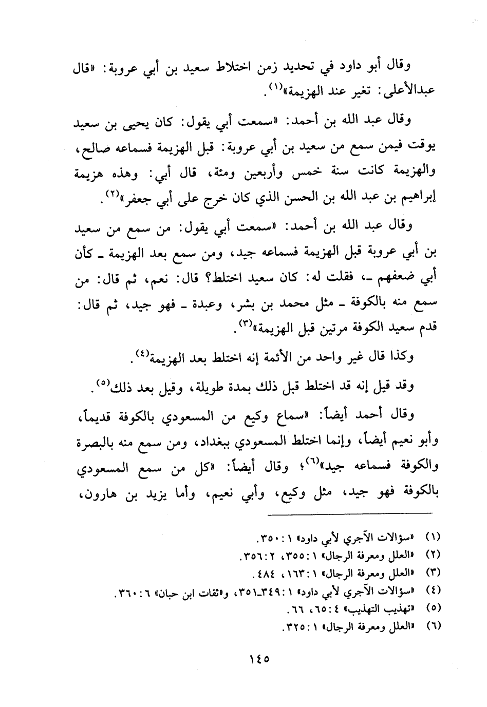 وقال أبو داود في تحديد زمن اختلاط سعيد بن أبي عروبة: "قال عبد الأعلى: تغير عند الهزيمة" (¬١).